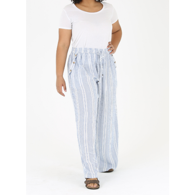 Beautiful floral prints or the modern stripes, either way these are insanely comfortable pull on pants featuring button detailing along the side pockets.