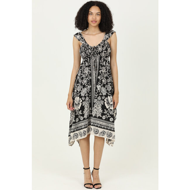Angie Angie Smocked Bodice Printed Assymetrical Hem Dress (F4K73)