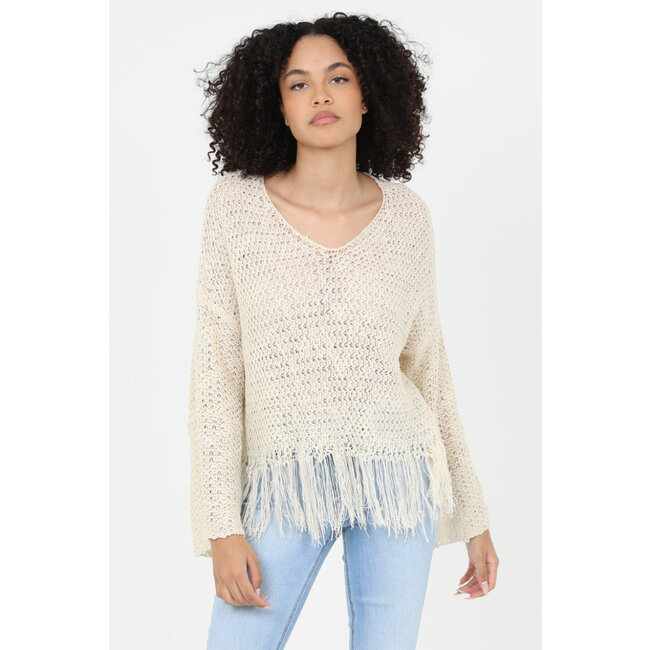 Angie Angie V Neck Light Weight Fringe Pullover Sweater (XHN03)