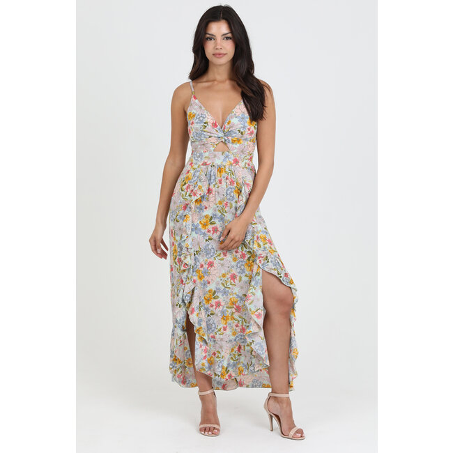 Angie Angie V Neck Maxi Dress W/ Sleeves (C4880)
