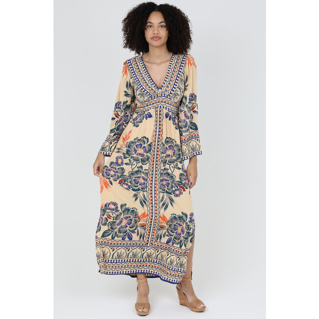 Angie Angie V Neck Maxi Dress W/ Sleeves (C4880)